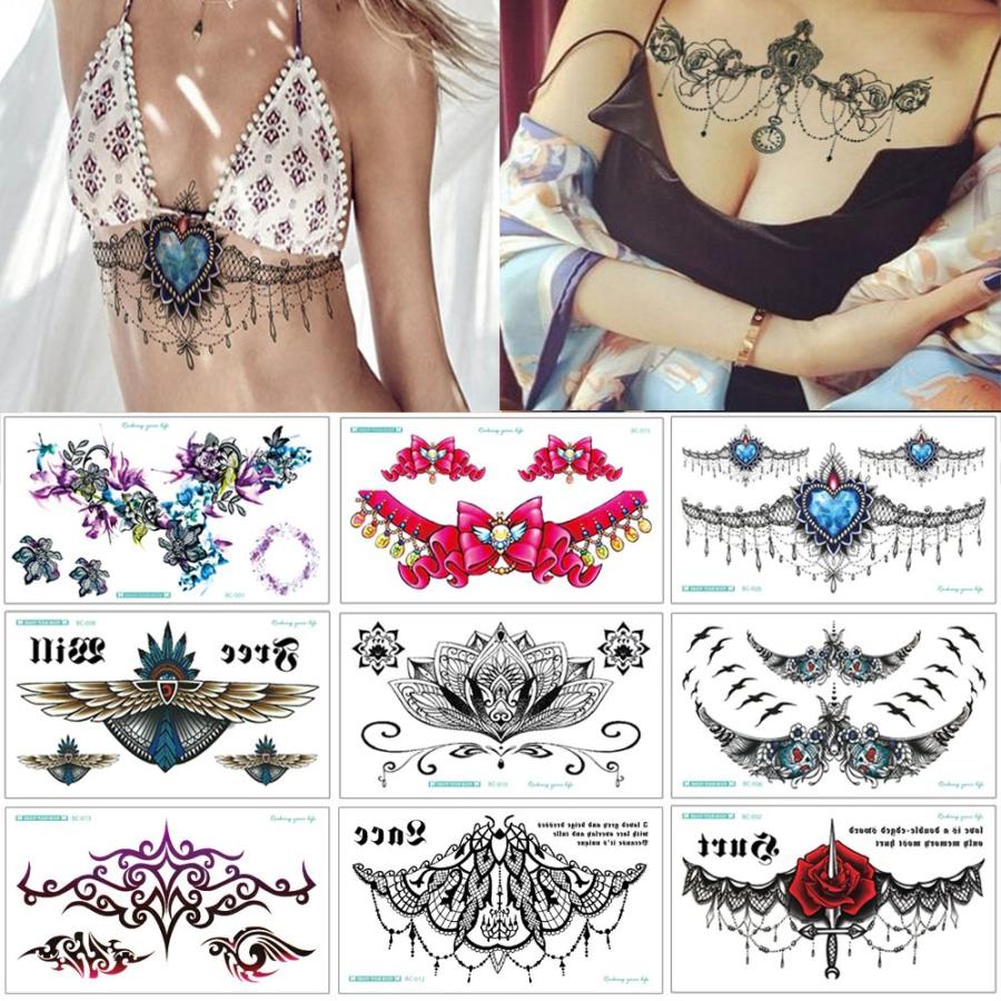 タトゥーシール A 鎖骨 胸 腰 背中 薔薇 スカル ハート リボン 蓮