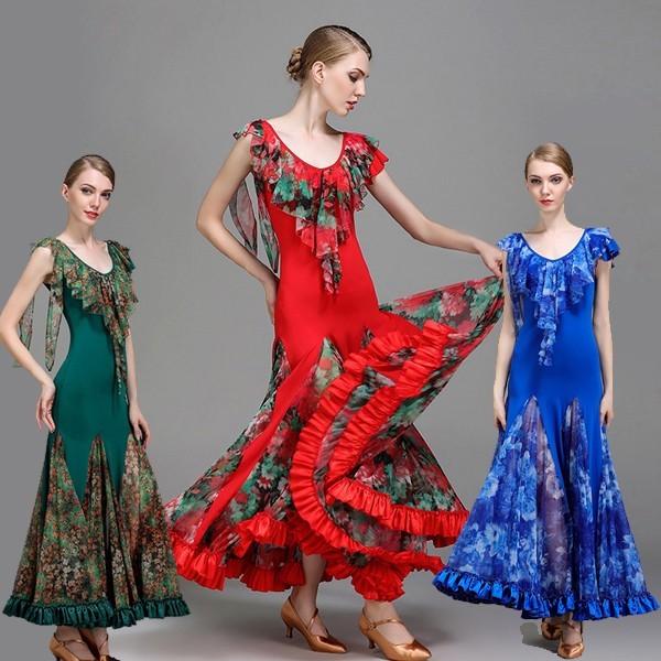 花柄ラテン ダンス服 ダンスウェア ワンピース 競技会 ワルツ ダンス服 競技用 インターナショナルダンス ステージ衣装 レッド グリーン ブルー Dm811f0 フルグレース 通販 Yahoo ショッピング