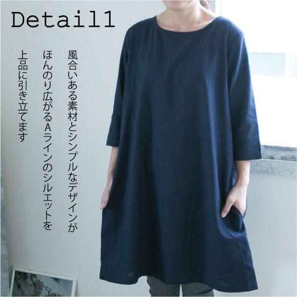 ワンピース ナチュラル 七分袖 コットン 体型カバー 服 ミディアム
