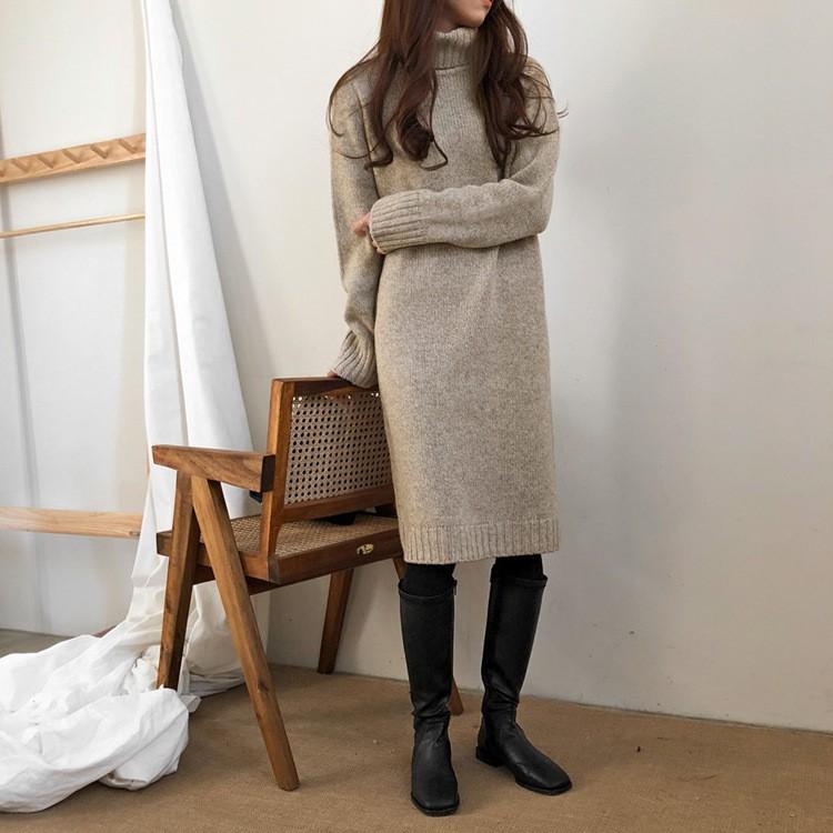 膝丈ワンピース レディース 秋服 ミディアム丈 ワンピース ハイネック