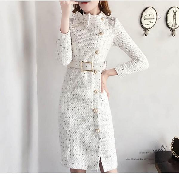 レディース ワンピース 秋服 冬服 ミニワンピース ツィードワンピース