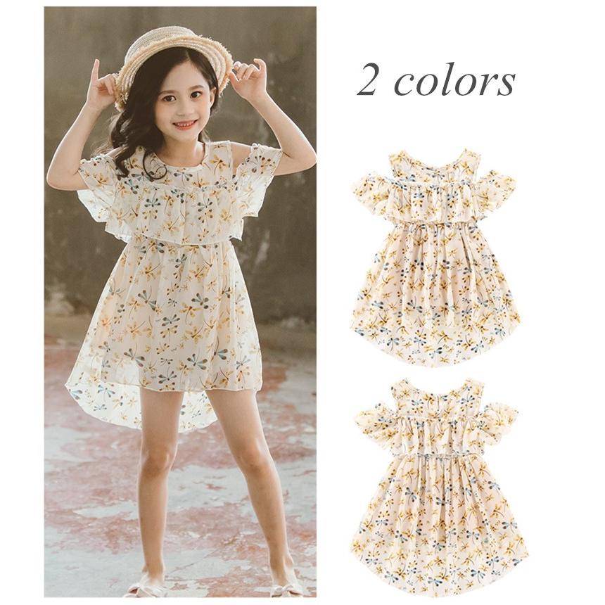 肩フリル花柄ドッキングワンピース 女の子 子供服 ジュニア服 通販