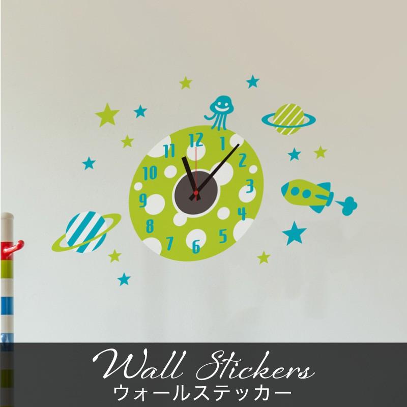 ウォールステッカー 時計 宇宙 イラスト 子供部屋 子供 かわいい