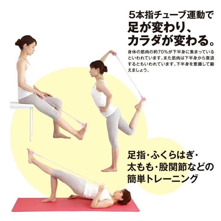 ストレッチ 健康器具 チューブ 脚 足 5本指 タオルつかみ 負荷 ご年配