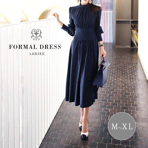 襟付き ワンピース フォーマル 春 夏 レディース 膝下 膝下丈 長め 春