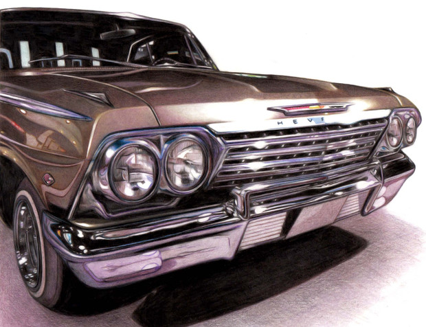色鉛筆画 Chevrolet Impala 1962 みやび さんのイラスト